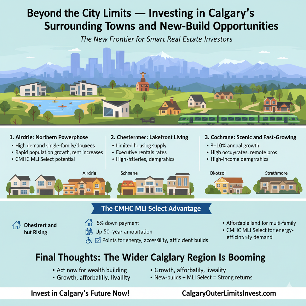 Calgary’s growth story doesn’t stop at the city’s edge. Surrounding towns like Airdrie, Chestermere, Cochrane, Okotoks, and Strathmore have become vibrant extensions of Calgary’s housing market, offering affordability, lifestyle appeal, and exceptional long-term potential.