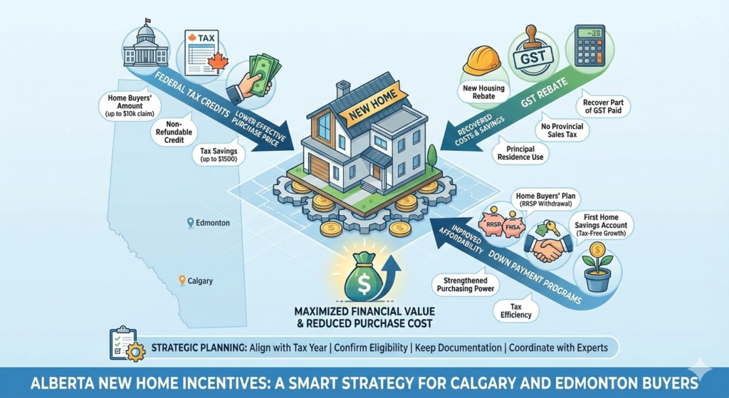If you are buying a new home in Alberta, understanding available incentives can change your entire budget strategy. Federal tax credits, GST rebates, and savings programs work together to improve affordability and reduce your effective purchase price.