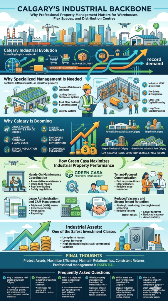 Calgary is leading the industrial real estate surge in Western Canada. Warehouses, flex spaces, and distribution centres are no longer passive investments; they are operational businesses that require expert oversight.