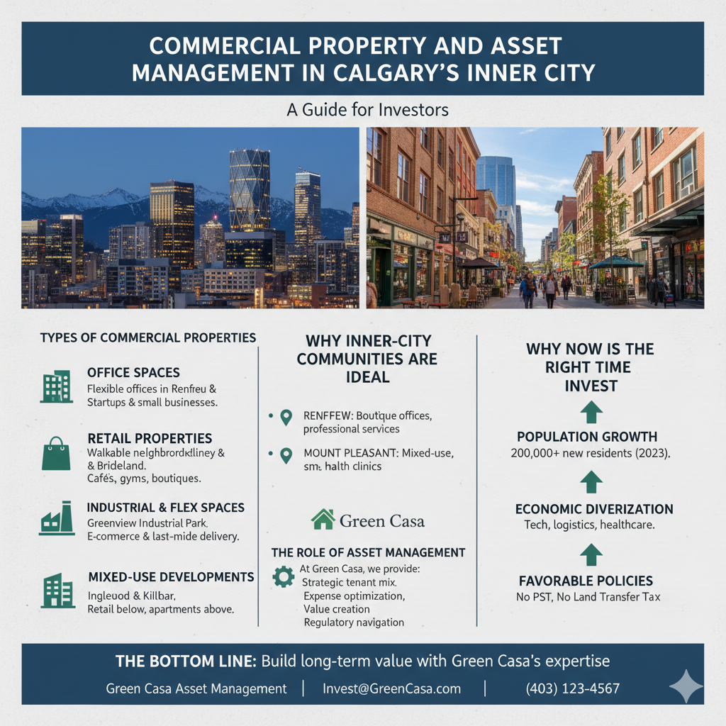 Commercial real estate in Calgary’s inner-city communities isn’t just about buying property; it’s about building long-term value. Whether it’s an office in Renfrew, a retail unit in Killarney, or a mixed-use development in Mount Pleasant, the opportunities are diverse and growing.