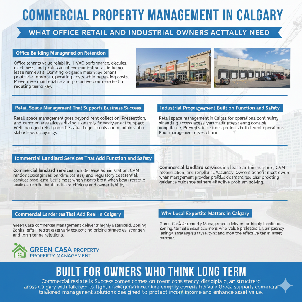 Green Casa supports commercial property owners across Calgary with tailored management solutions designed to protect income and enhance asset value.