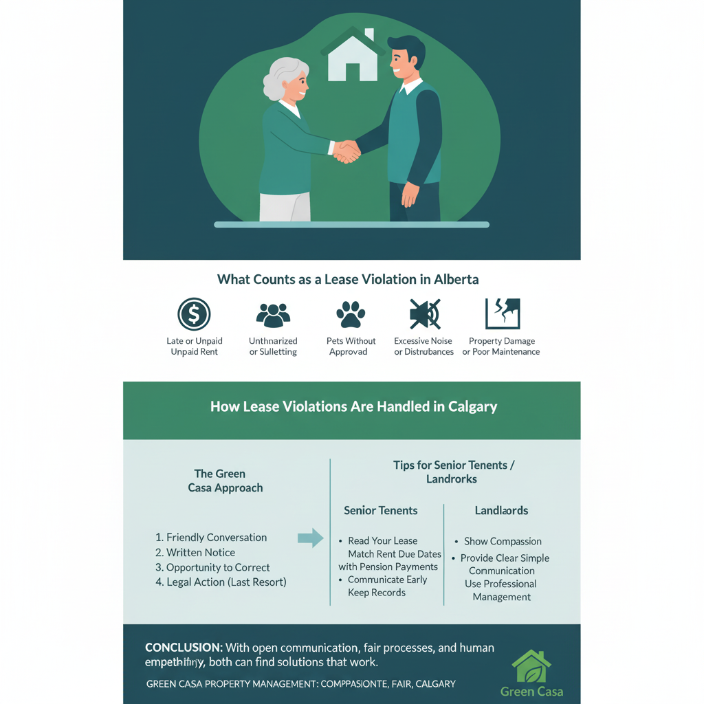 Lease violations happen, and when they do, both sides can feel stressed or even unfairly treated. For older tenants, especially seniors who value stability, a lease violation notice can feel overwhelming. For landlords, violations can mean financial strain or property concerns. At Green Casa Property Management in Calgary, we’ve seen it all, and our mission is to bridge that gap with compassion, fairness, and a clear path forward.