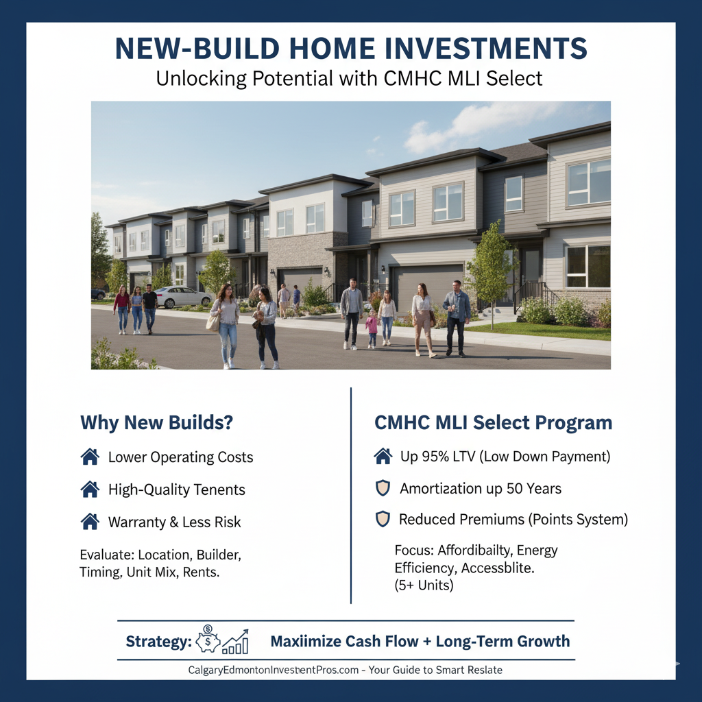 As rental demand continues to rise in the Calgary/Edmonton corridor, and rising building costs push older stock toward obsolescence, the strategy of investing in new-build rental homes (or well-positioned new-build communities) is gaining traction. At the same time, the CMHC MLI Select program has emerged as a powerful financing tool that can transform deals, especially for multi-unit properties (5 + units). In this blog, I’ll cover why new builds are attractive, how to evaluate them, and then deep-dive into the MLI Select program: how it works, how the points system operates, practical investor steps, and how this applies to Calgary/Edmonton markets.