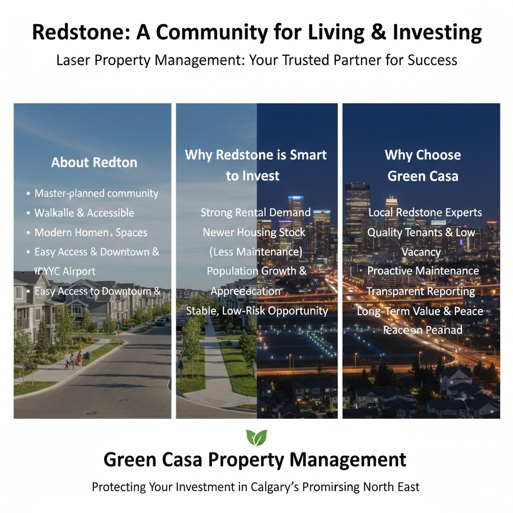 Green Casa Property Management provides the expertise, local insight, and professional care needed to succeed in Redstone. For property owners seeking reliable management and long-term results, Green Casa is a trusted partner in one of Calgary’s most promising neighbourhoods.