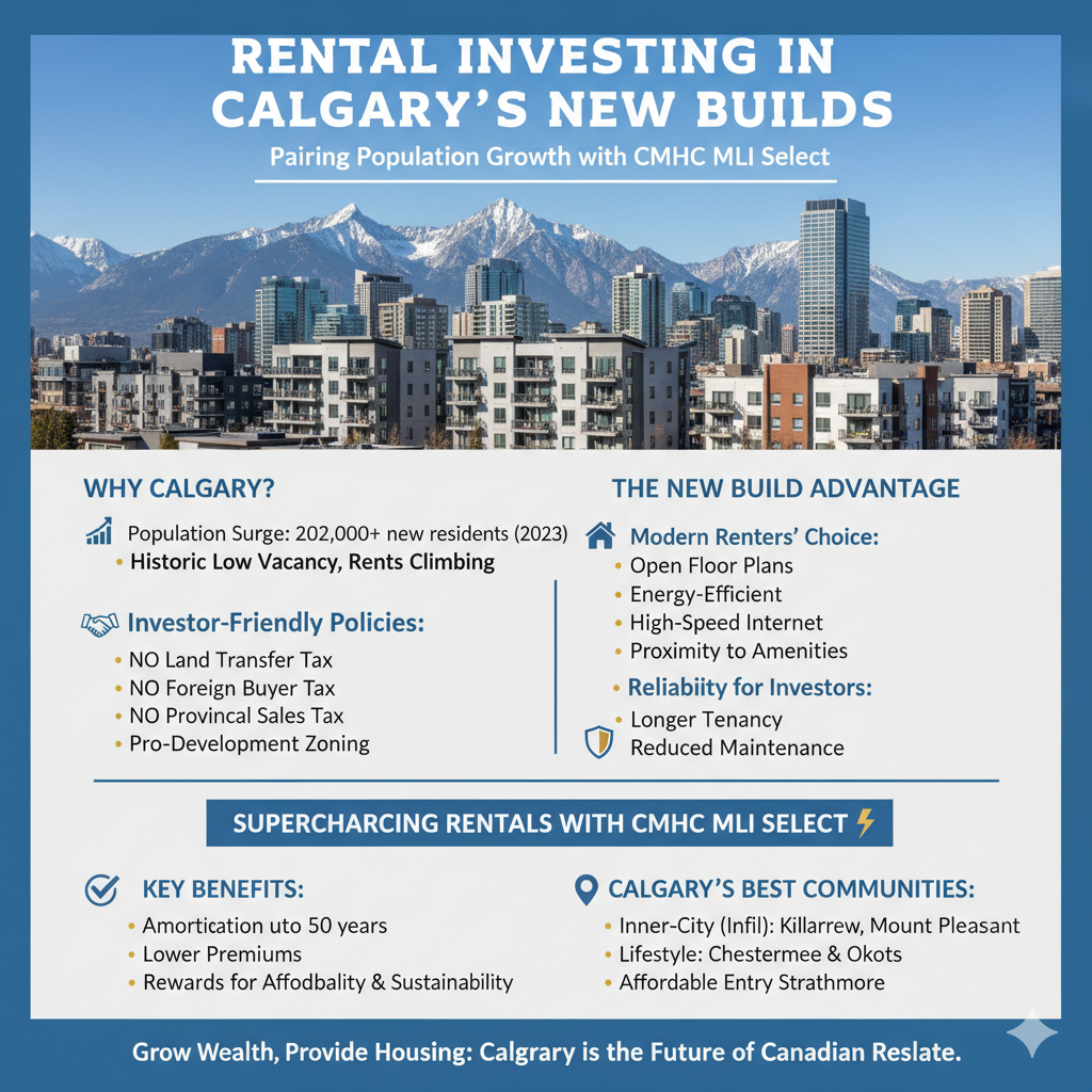 Rental investing in Calgary’s new builds is not just about today’s returns; it’s about building for tomorrow. With population growth at record highs, no rent control, and MLI Select unlocking financing flexibility, Calgary offers investors a unique opportunity to combine stability, scalability, and community impact.
