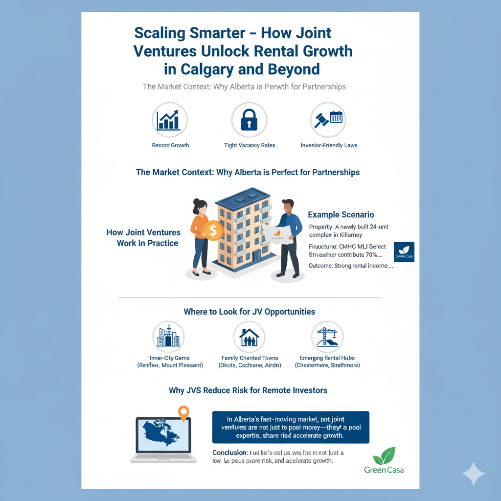 For someone in Ontario or B.C., investing in Alberta can feel risky. JVs mitigate this by partnering with local experts who understand zoning, tenant laws, and market trends. With professional management like Green Casa, even remote owners can feel confident that their assets are being cared for.