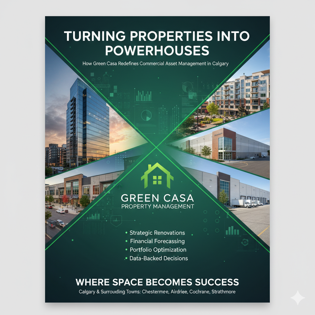 At Green Casa Property Management, every square foot counts. Whether it’s an office tower in downtown Calgary, a retail plaza in Airdrie, or a warehouse in Okotoks, our mission remains the same to transform every property we manage into a stronger, smarter, and more profitable investment.