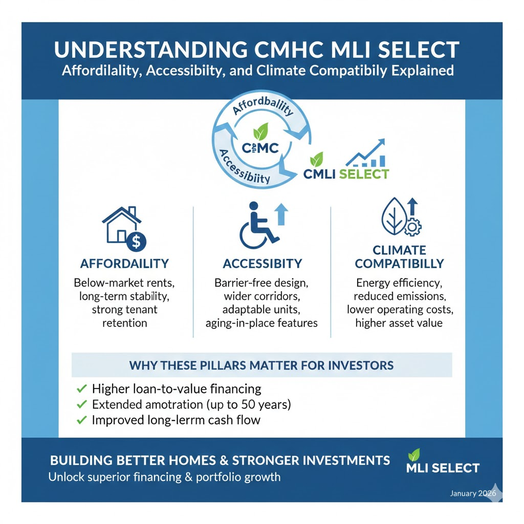 CMHC MLI Select has become one of the most important financing programs in Canada’s multi-family rental market. It is not simply a mortgage insurance product. It is a structured framework designed to reward investors and developers who contribute to stronger housing outcomes.