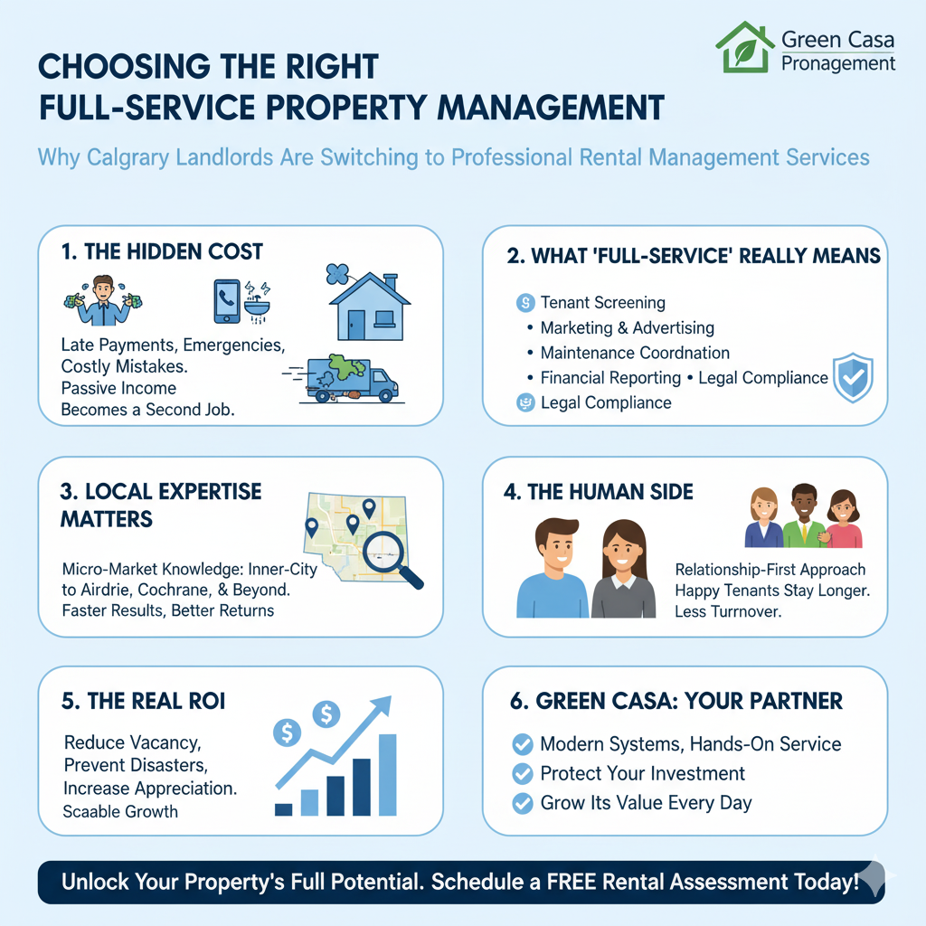 Suppose you’re searching for residential property management in Calgary or looking for a full-service property management partner. In that case, this guide will show you what really matters, and why Green Casa Property Management is redefining what “full-service” means in Alberta’s evolving rental market.