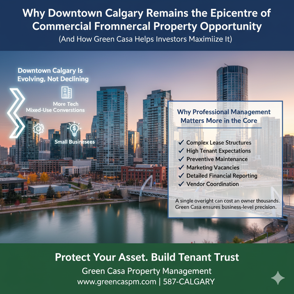 For an investor, owning a downtown Calgary commercial property isn’t the challenge. Keeping it occupied, profitable, competitive, and compliant is where the real work begins. This is where professional downtown Calgary commercial property management becomes essential, and where Green Casa Property Management stands out.