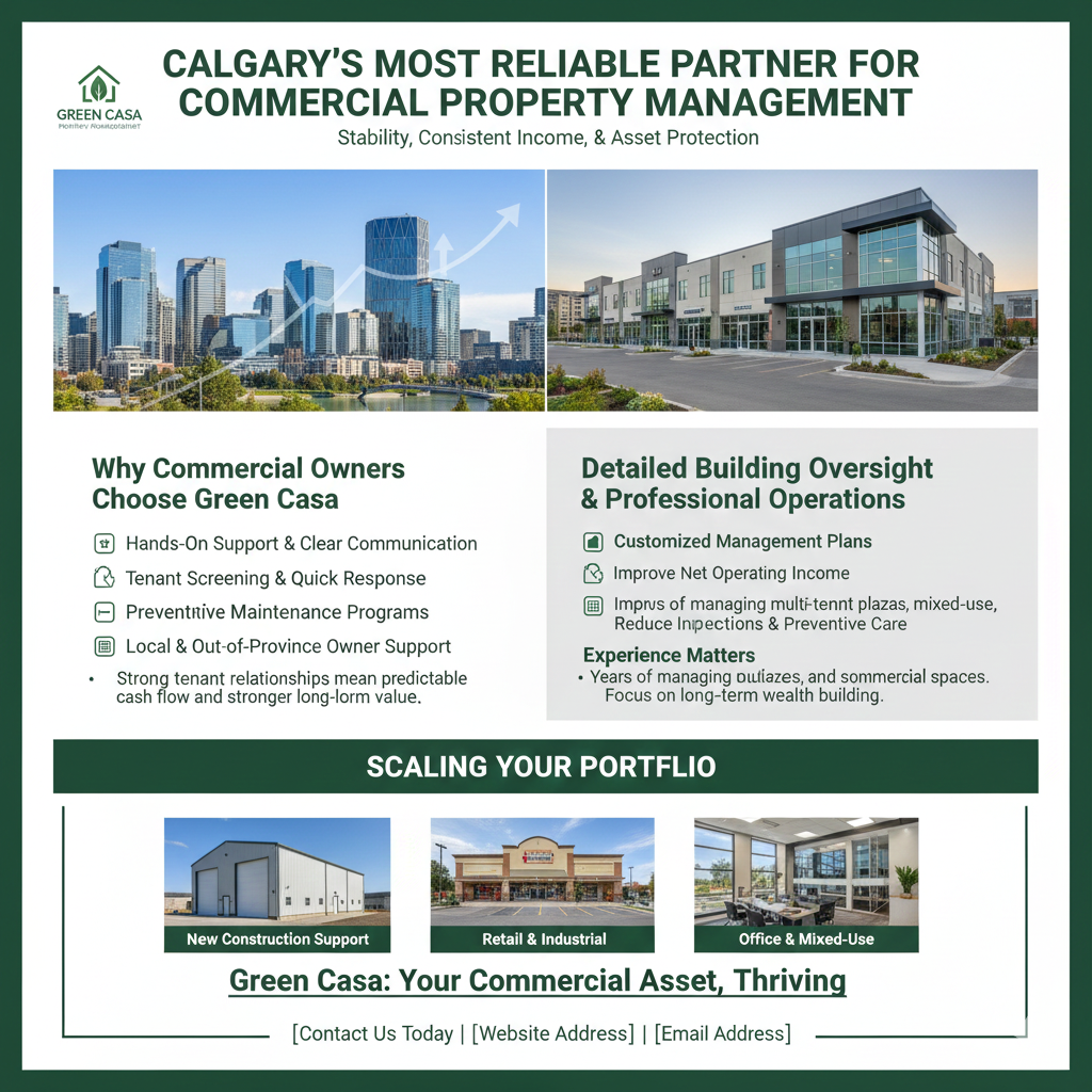 When commercial property owners begin searching for commercial property management Calgary, Calgary commercial property managers, or commercial building management Calgary, they are not just looking for a basic service. They are looking for stability, consistent income, and a management team that protects their investment like it is their own. Green Casa has become a trusted name in the city because it delivers exactly that.