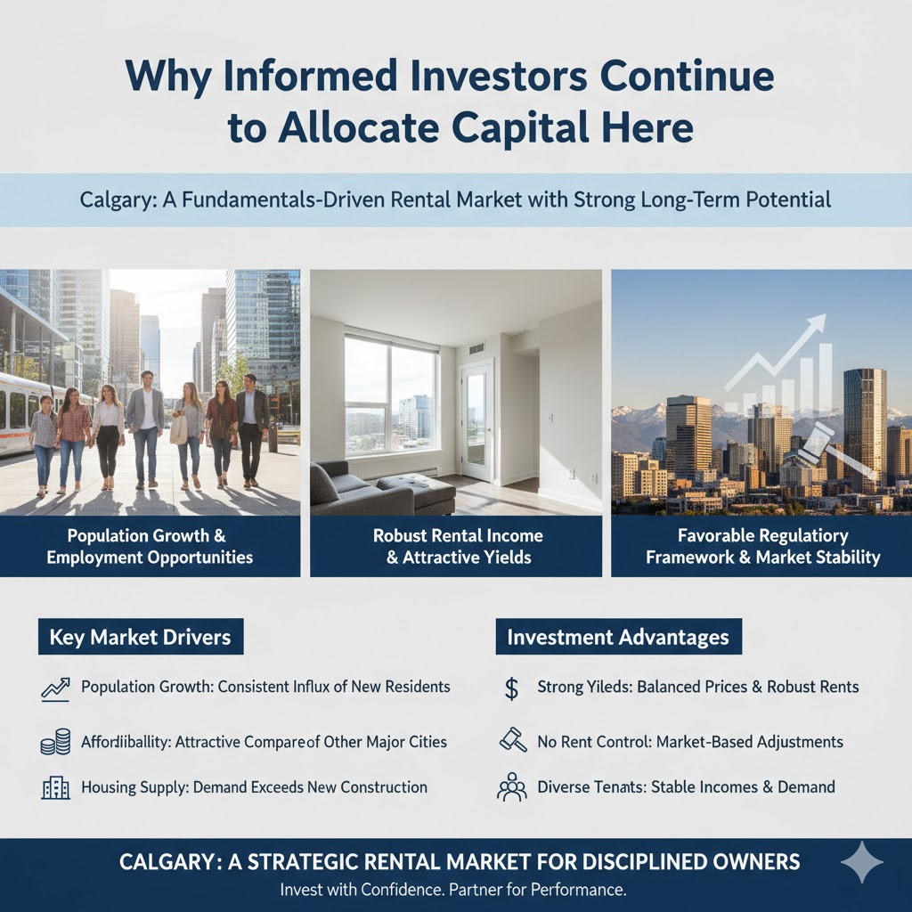 For investors, the conclusion is clear. Calgary is not a speculative rental market. It is a fundamentals-driven environment where disciplined ownership and professional management can generate consistent returns.