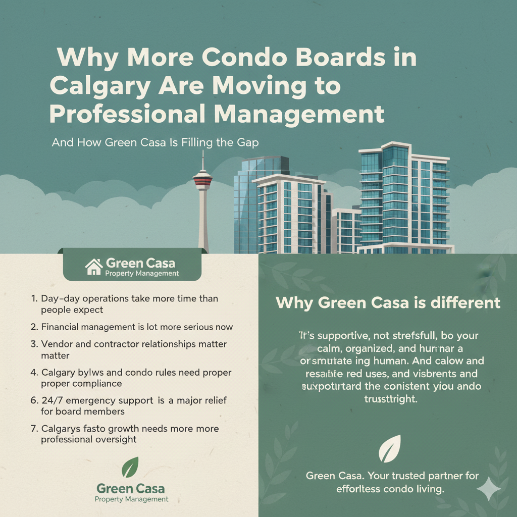 At Green Casa Property Management, we see this all the time. Board members are volunteers. They have full-time jobs, families, and lives. They are not accountants or building engineers or mediators. So here is a look at why professional management is becoming the new normal in Calgary and how it protects both the condo building and the people who live in it.