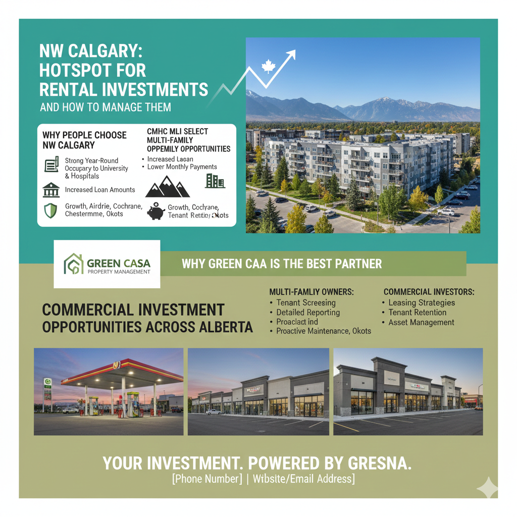 From NW Calgary’s high-demand rental landscape to the expanding commercial investment opportunities across Alberta, there has never been a better time to grow a real estate portfolio. With the support of CMHC ML, select multi-family investors can amplify their returns while improving housing options. And with Green Casa as the trusted management and leasing partner, owners can invest confidently knowing their assets are operated with precision and care.