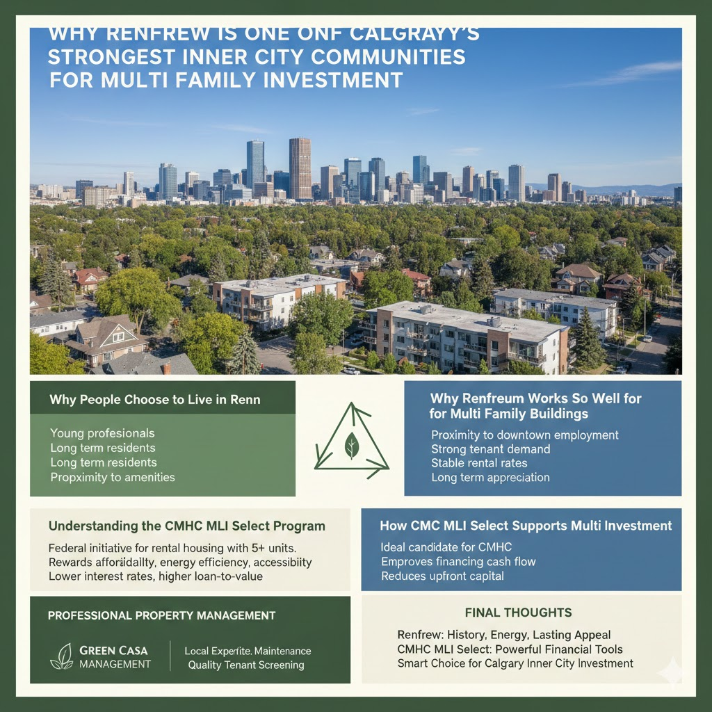 For investors, Renfrew presents a compelling opportunity for multi-family buildings. When combined with CMHC MLI Select financing and professional management from Green Casa Property Management, this community offers stability, demand, and long-term value.